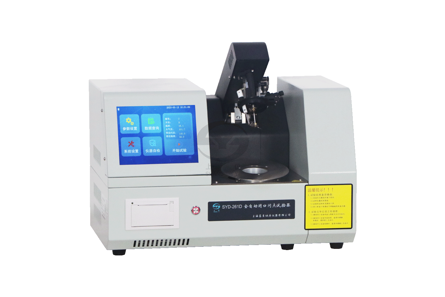 | 安全性、蒸發(fā)性 | 閃點(diǎn)、燃點(diǎn) | 全自動(dòng)閉口閃點(diǎn)試驗(yàn)器 | SYD-261D | 8 寸觸摸屏,實(shí)時(shí)記錄實(shí)驗(yàn)數(shù)據(jù),狀態(tài)參數(shù),并有曲線顯示;A,B,C三種測(cè)試方法可選;具有大氣壓自動(dòng)測(cè)量,自動(dòng)修正閃點(diǎn)值;配有藍(lán)牙接口可進(jìn)行數(shù)據(jù)采集分析;具備電子點(diǎn)火和氣點(diǎn)火兩種方式選擇。 | |