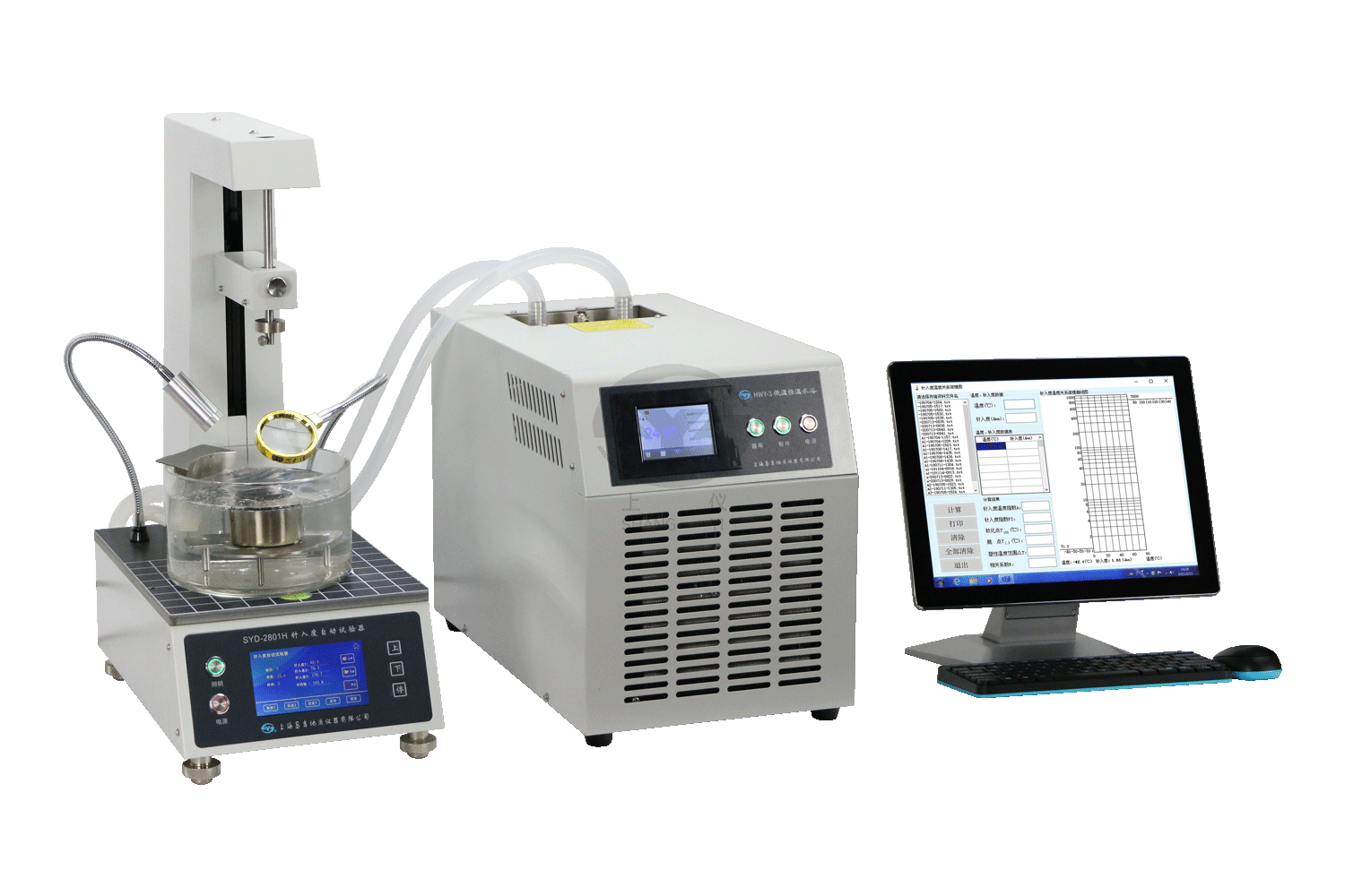 1、儀器配套HWY-3恒溫水浴,可以提供循環(huán)恒溫水至針入度儀工作平臺(tái)上的恒溫浴缸,可以實(shí)現(xiàn)被測(cè)試樣所需的溫度環(huán)境,控溫精度達(dá)到±0.1℃。