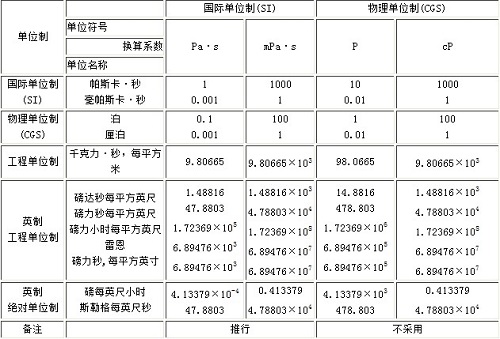 1Pa·s=1N·s/ m2=10P(泊)=10?cP(厘泊)