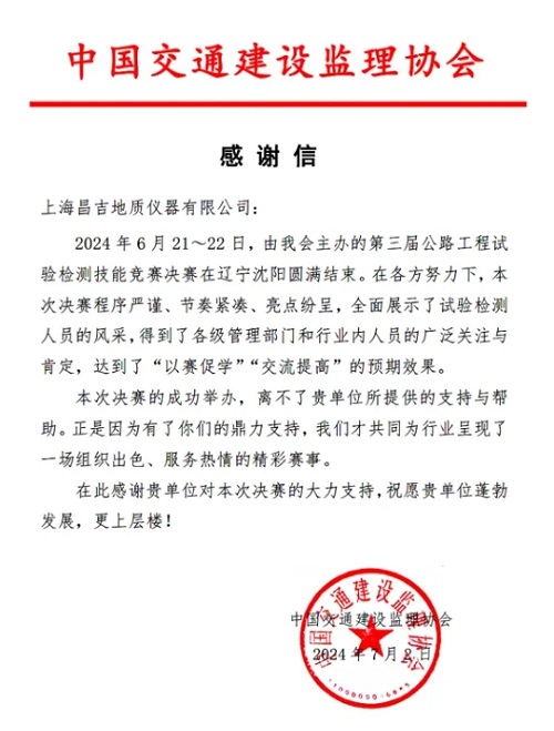 1.上海昌吉地質(zhì)儀器有限公司榮獲2023~2024年度杰出瀝青檢測設(shè)備生產(chǎn)商