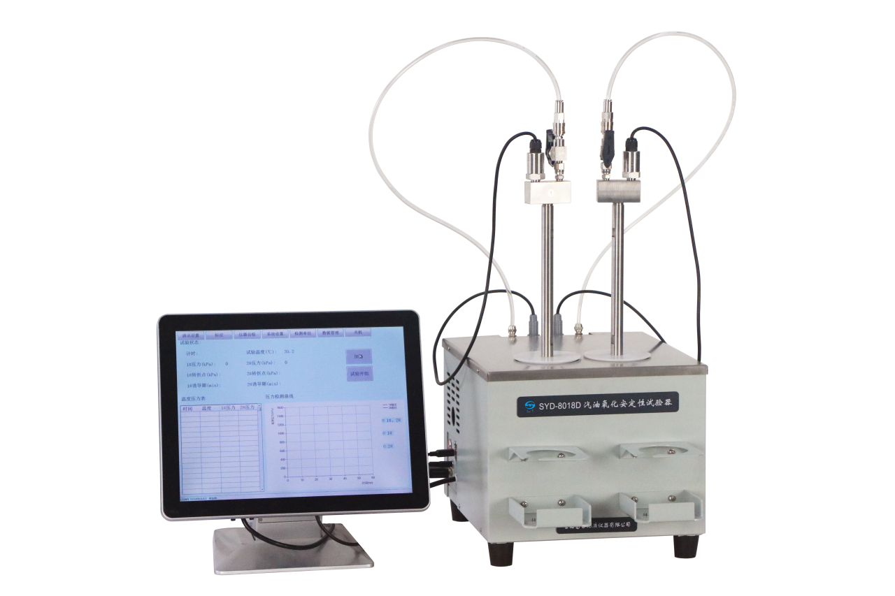 YD-8018D 汽油氧化安定性試驗器 (誘導(dǎo)期法) 產(chǎn)品特點 1、 儀器采用分體式結(jié)構(gòu),上位機(jī)(臺式工控機(jī))和下位機(jī)(測試主機(jī))組成。臺式外置工控機(jī),方便用戶試驗操作,符合人體工程學(xué)原理;并利用工控機(jī)的優(yōu)勢,使整機(jī)具有操作簡單,控制精準(zhǔn),自動化程度高等一系列優(yōu)點。 2、 測試主機(jī)采用串口與臺式工控機(jī)相連,分體設(shè)計具有試驗安全性高,延長儀器使用壽命等特點。 3、 測試氧彈總成的一體化設(shè)計,不僅極大地縮短了油氣壓力測試管路,使壓力檢測更加準(zhǔn)確,而且由于高密封性手控針閥的使用,可以保證測試過程中氧彈的良好密封,使試驗結(jié)果更可靠。 4、 金屬浴設(shè)計結(jié)構(gòu),無污染,無需補(bǔ)水,更加綠色環(huán)保。完善設(shè)計的保溫隔熱系統(tǒng),既節(jié)省能源又避免了對操作者燙傷的危險。 5、 特殊的氧彈支架的設(shè)計構(gòu)造,方便操作者在其上對氧彈蓋進(jìn)行拆卸,也方便試驗前后氧彈的放置。 6、 儀器自動化程度高,測試過程中,系統(tǒng)各種參數(shù)均在工控機(jī)界面上實時顯示,兩個氧彈內(nèi)的壓力曲線也實時畫出,且時間軸會自動隨實際曲線的時間長度而變,測試結(jié)果一目了然。 7、工控機(jī)電腦控制系統(tǒng),完善的人機(jī)交互界面設(shè)計,操作簡便,一鍵可完成所有試驗操作過程??涉溄?/span>LIMS系統(tǒng),及外接打印機(jī)等功能,實現(xiàn)數(shù)據(jù)無縫對接。 SYD-8018D-1汽油氧化安定性試驗器 (誘導(dǎo)期法) 產(chǎn)品特點 1、臺式結(jié)構(gòu),整機(jī)一體化設(shè)計,試驗部分和控制部分合二為一,集成度高,無需外接電腦,也無需鼠標(biāo)鍵盤。 2、采用內(nèi)置工控機(jī),全自動模式工作,10.1 英寸彩色觸摸屏,Windows7 操作系統(tǒng),全中文界面,簡單清晰,外形美觀,操作方便。 3、改傳統(tǒng)水浴為金屬浴,無污染,無需補(bǔ)水,操作使用更方便。 4、雙孔設(shè)計,可以同時測試兩個樣品,更方便用戶做平行樣試驗。 5、完善的保溫隔熱系統(tǒng),既節(jié)省能源又避免了對操作者燙傷的危險。 6、氧彈及測試系統(tǒng)一體化設(shè)計,且裝有彈體過壓自動泄壓保護(hù)裝置,使用更安全。 7、彩色顯示屏實時顯示兩個氧彈測試曲線圖、時間和壓力對應(yīng)關(guān)系數(shù)據(jù)、兩個氧彈合成的比對曲線圖、氧彈壓力和溫度實時數(shù)據(jù)等,曲線圖的時間軸會自動隨實際曲線的時間長度而變,最長到3000分鐘,適應(yīng)范圍廣,測試狀況直觀明了。 8、軟件設(shè)計自動化程度高,自動完成一系列操作,人機(jī)對話界面親切,指導(dǎo)用戶正確執(zhí)行操作流程,避免錯誤。 9、兩側(cè)氧彈定位孔的設(shè)計,可以方便操作者在定位孔內(nèi)對氧彈蓋進(jìn)行拆卸,同時也方便試驗前后氧彈的放置。